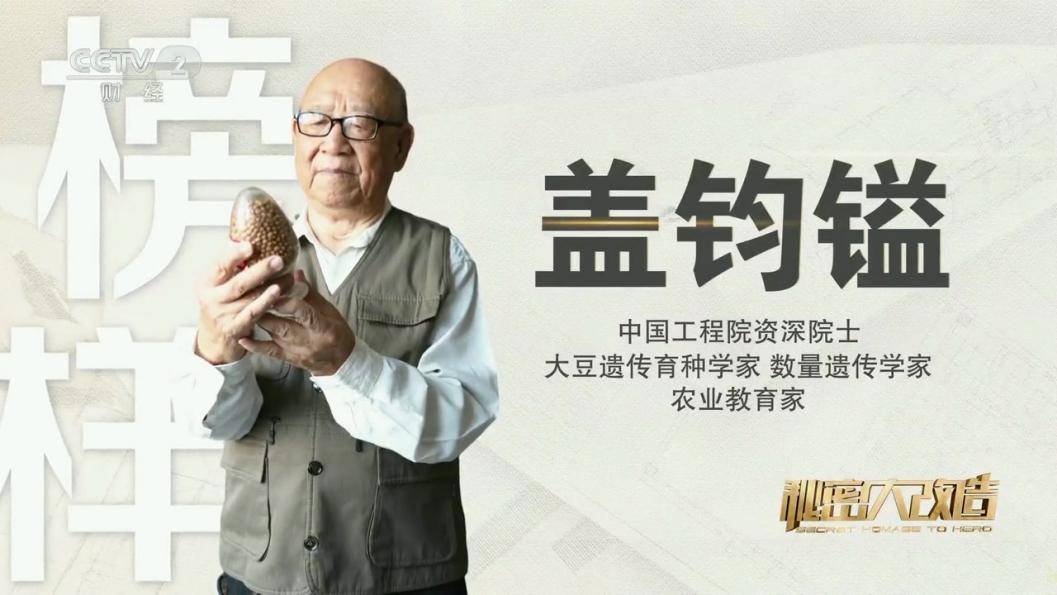 “大豆院士”蓋鈞鎰,是中國工程院的資深院士,66年投身大豆科研事業,為了“中國碗里裝中國糧”,將畢生心血傾注于大豆科研事業,帶領團隊建成了世界第三大大豆種質綜合性狀數據庫,并育成了以“南農”命名的50多個大豆新品種,為我國大豆增產作出了杰出貢獻。