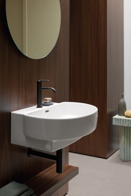 該系列的設計核心與靈魂色調——啞光陶土色,以傳統工藝為靈感,賦予陶瓷產品質樸自然而溫暖優雅的質感,使其更具有手工般的真實觸感。Urquiola表示:“我們的目標是利用陶土這種材料,創造出一種讓衛浴用品更有層次的畫布。這是有意偏離純白或純黑極簡美學的嘗試。”這也構成了浴室家具的配色基礎,大地色系的陶土色調以及以自然為靈感的色彩搭配,其中融入了白色、土棕色和啞光炭黑色的微妙變化,預示著浴室色彩運用的全新開放性。
