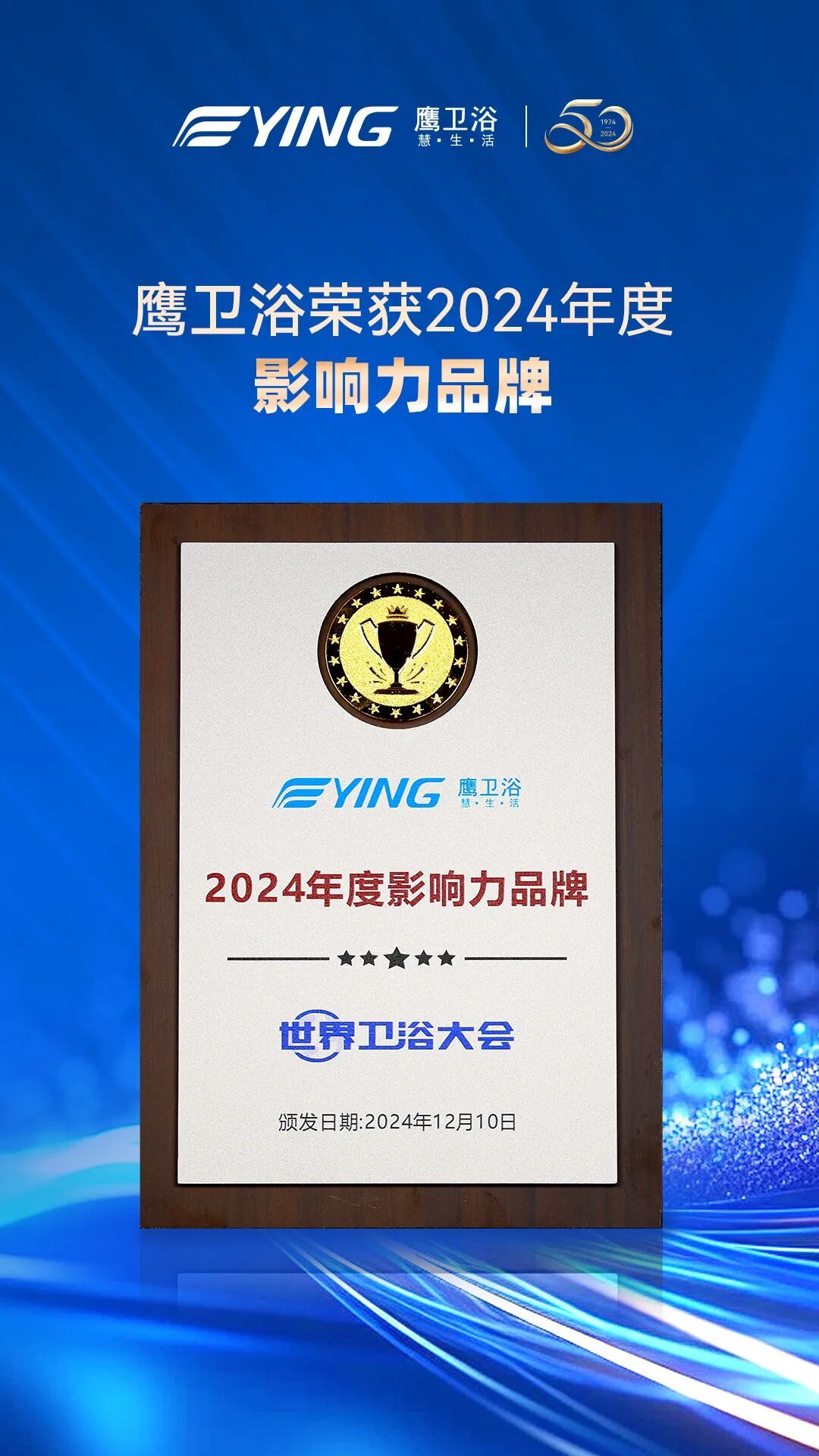 榮膺“2024年度影響力品牌”,是鷹衛浴在品牌建設與市場拓展道路上取得的又一成就。2024年,鷹衛浴迎來了50周年的發展里程碑,在品牌宣傳、終端形象等都取得了傲人的成績。
